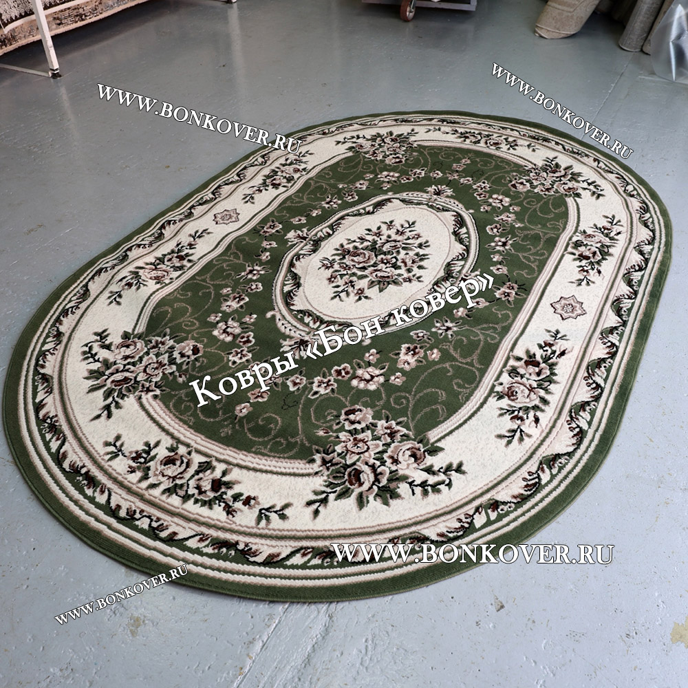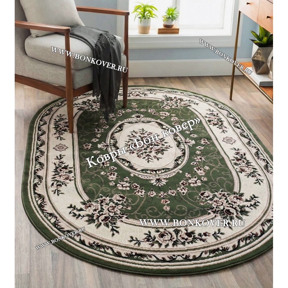 Ковер Лайт Карпет Дизайн 23896 Зеленый Овал станет великолепным преображением жилого помещения, подчеркивая высокий статус семьи владельца.