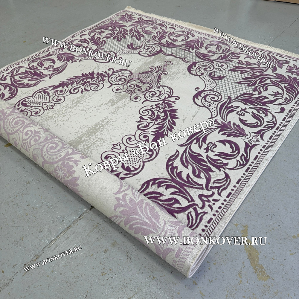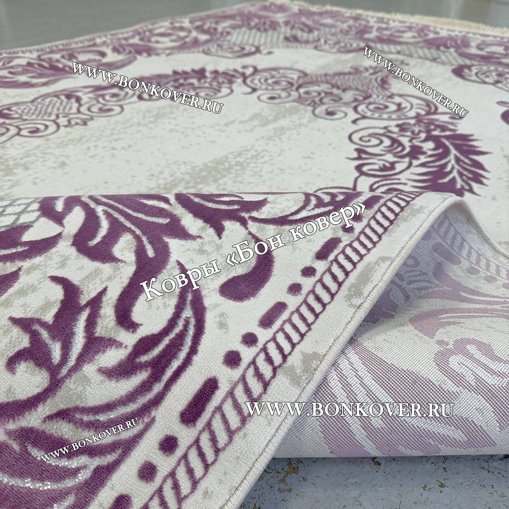 Ковер Медальон Для Гостиной Дизайн 30543 Сиреневый станет привлекательным дополнением интерьера, оформленного в современном или классическом стиле. Мягкое, но прочное, ковровое покрытие обеспечивает тепло- и шумоизоляцию, отличается длительным сроком эксплуатации, пожаробезопасностью, экологичностью и высокой износостойкостью, является отличной преградой от повышенной влажности в помещении и утеплителем для холодного пола. Благодаря качеству материалов, ковер не деформируется, сохраняет форму под тяжестью предметов мебели. За его поверхностью легко ухаживать.